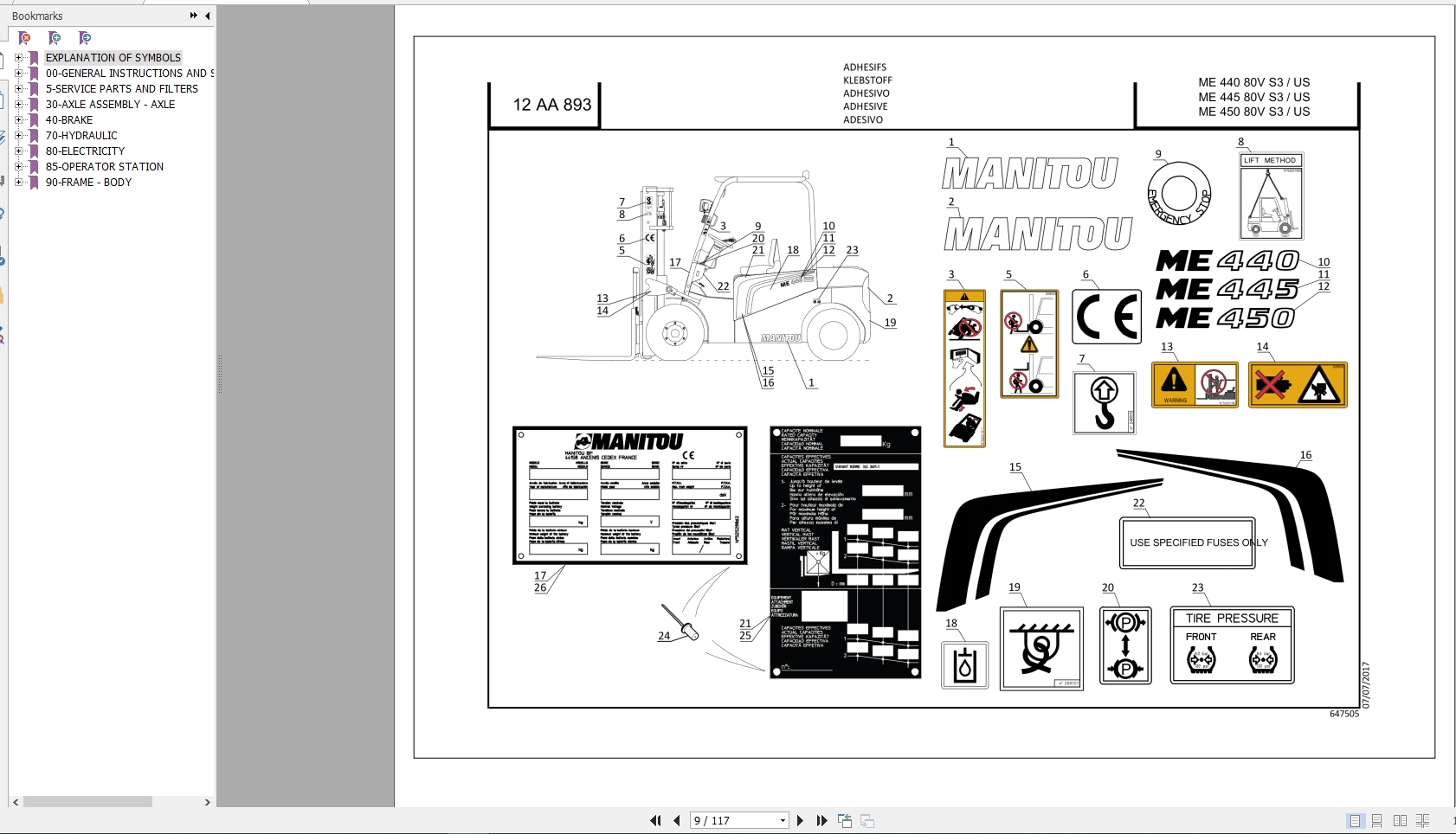 The Bookmarks of Manitou ME 450 80V S3 Forklift Parts Manual: