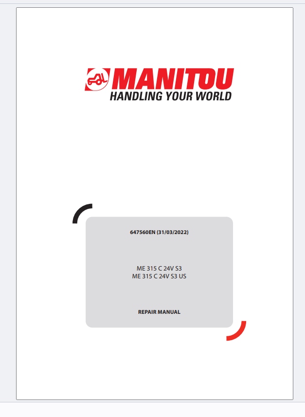 Manitou Forklift ME 315 C 24V S3 ME 315 C 24V S3 US Repair Manual 647560FR 2022.pdf