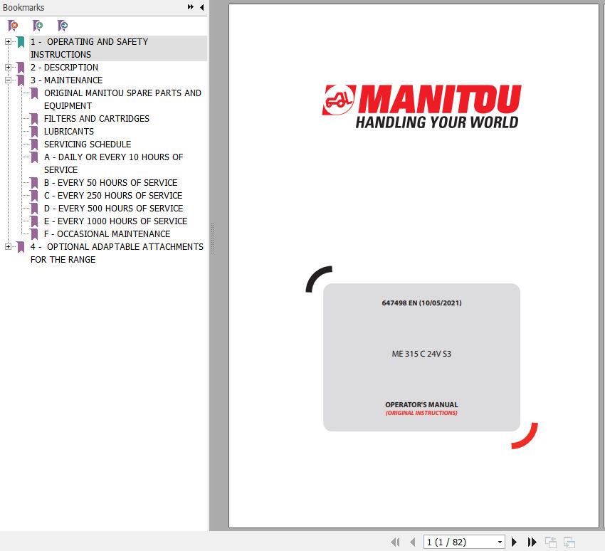 Manitou ME 315 C 24V S3 Operator's Manual 647498 EN