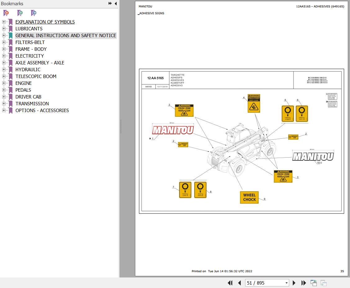 The Bookmarks Of Manitou MHT 10230 ST4 S1 MINING 129M Telescopic Handler Parts Catalog: