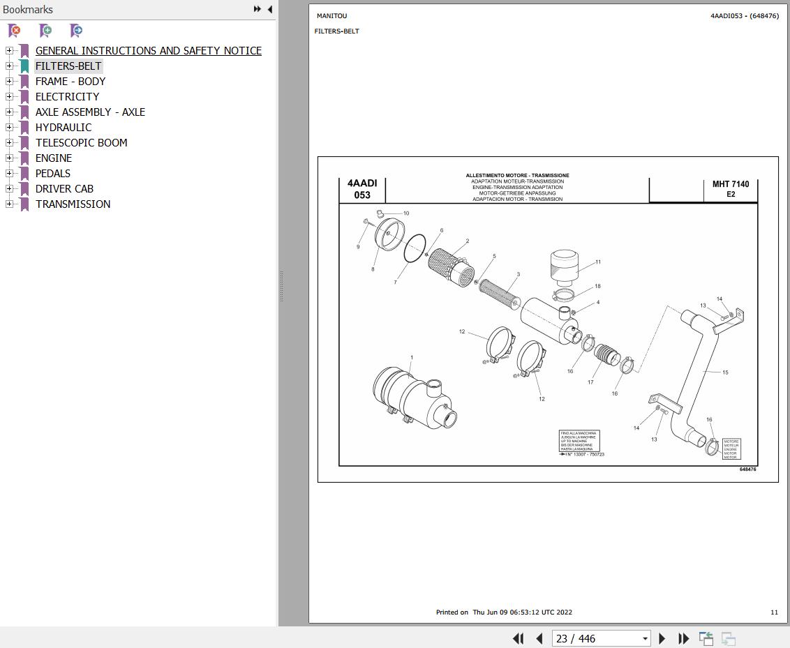 The Bookmarks Of Manitou MHT 7140 L TURBO SERIE M E2 Telescopic Handler Parts Catalog: