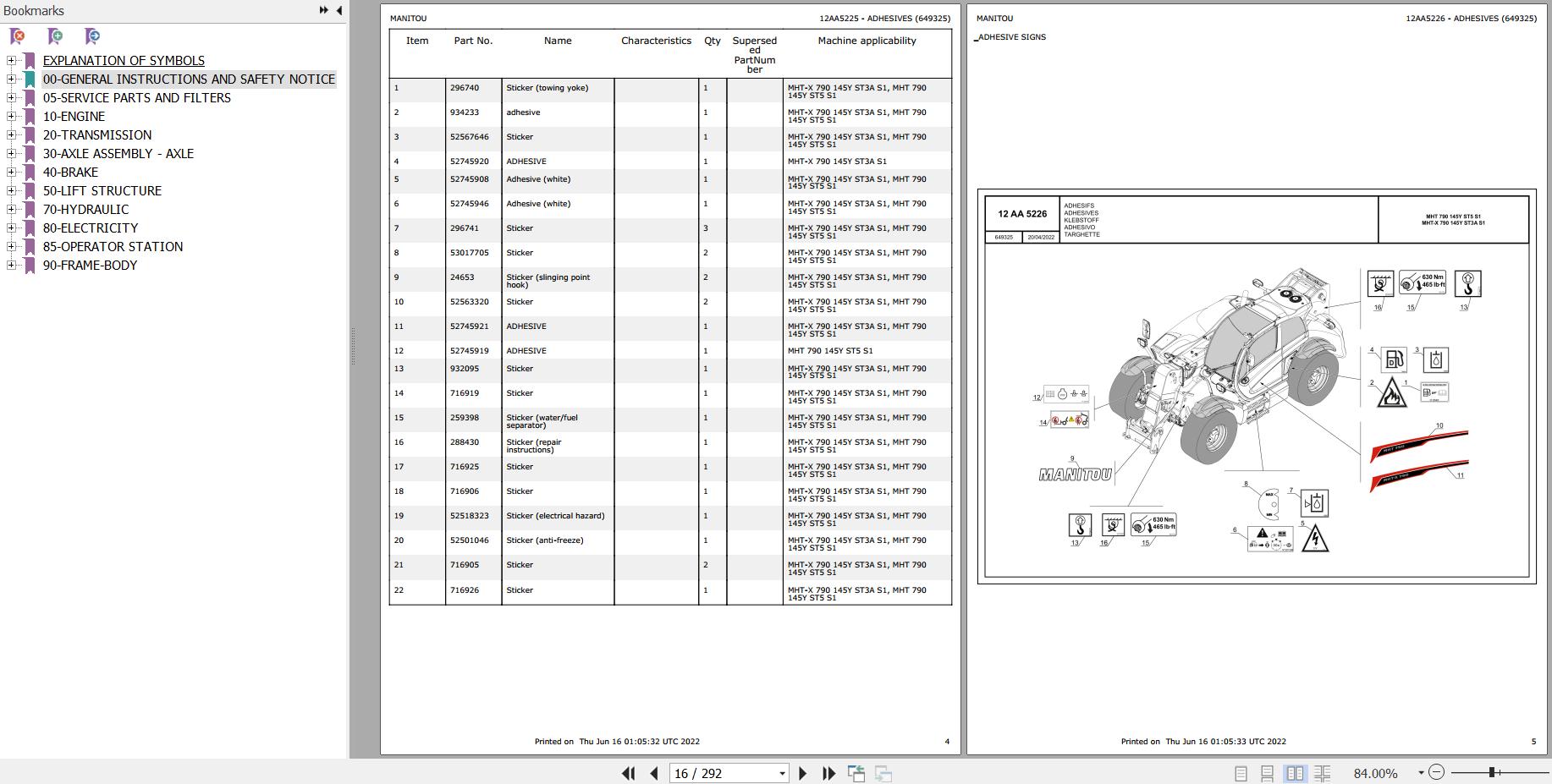 The Bookmarks Of Manitou MHT 790 45Y ST5 S1 MHT-X 790 145Y ST3A S1 Telescopic Handler Parts Catalog: