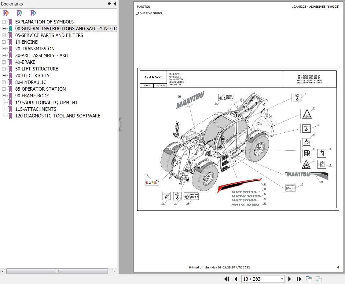The Bookmarks Of Manitou MHT-X 10160 175Y ST3A S1 Telescopic Handler Parts Catalog: