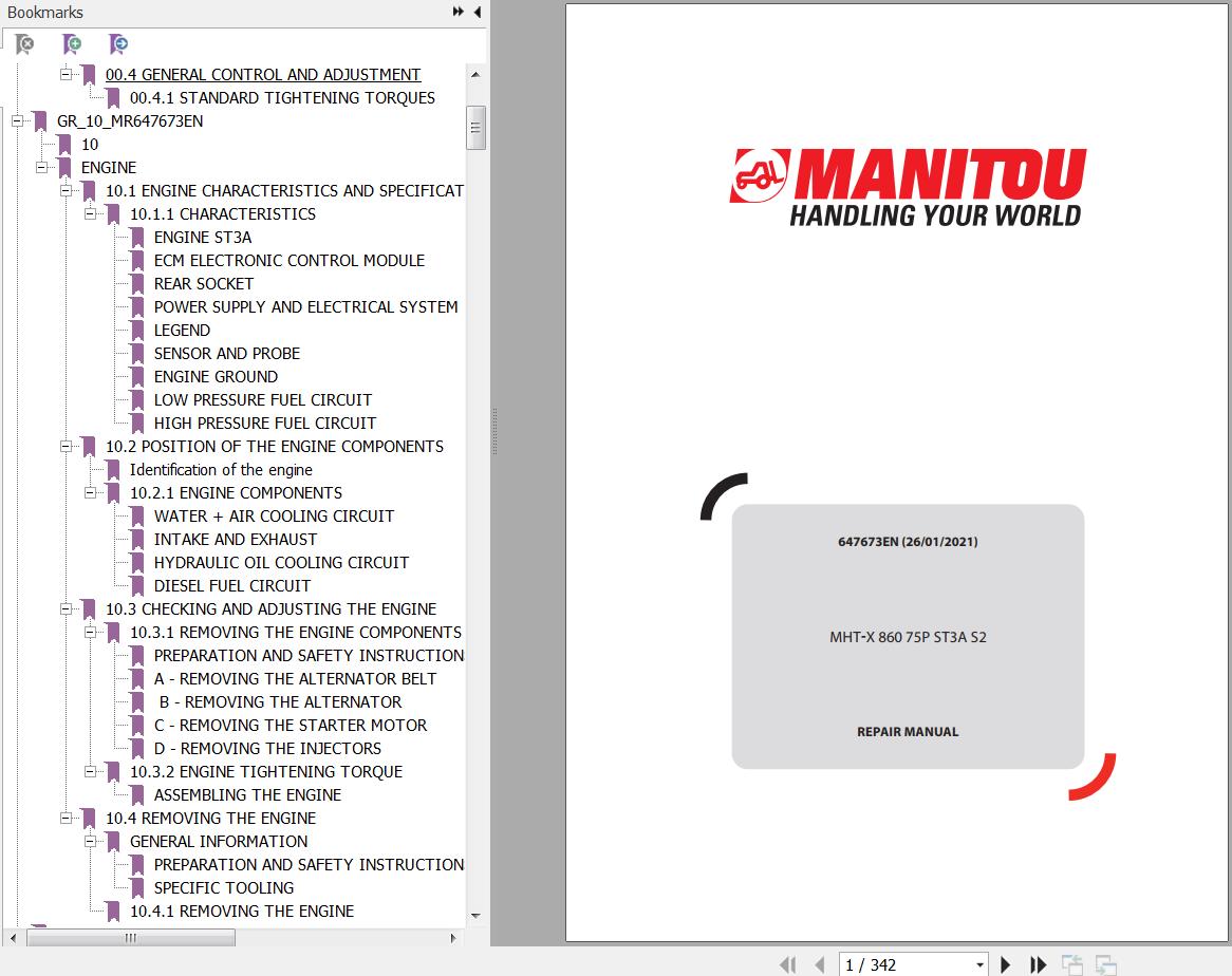 The Bookmarks Of Manitou MHT-X 860 75P ST3A S2 Telescopic Handler Repair Manual: