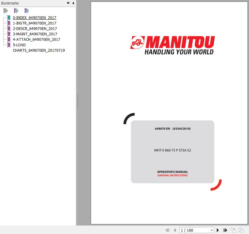 The Bookmarks of Manitou MHT-X 860 75 PS T3A S2 Telescopic Handlers Operator's Manual: