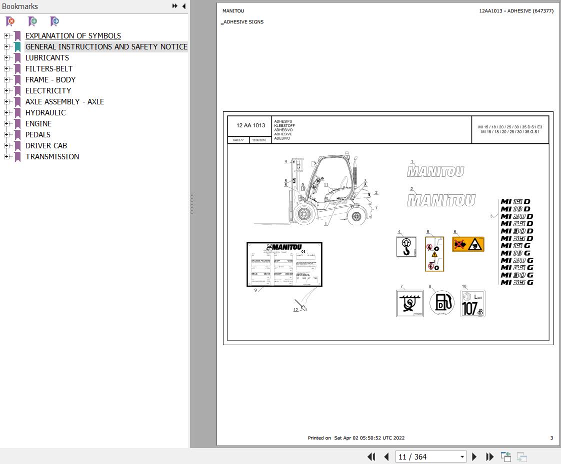 The Bookmarks Of Manitou MI 15 G Telescopic Handler Parts Catalog: