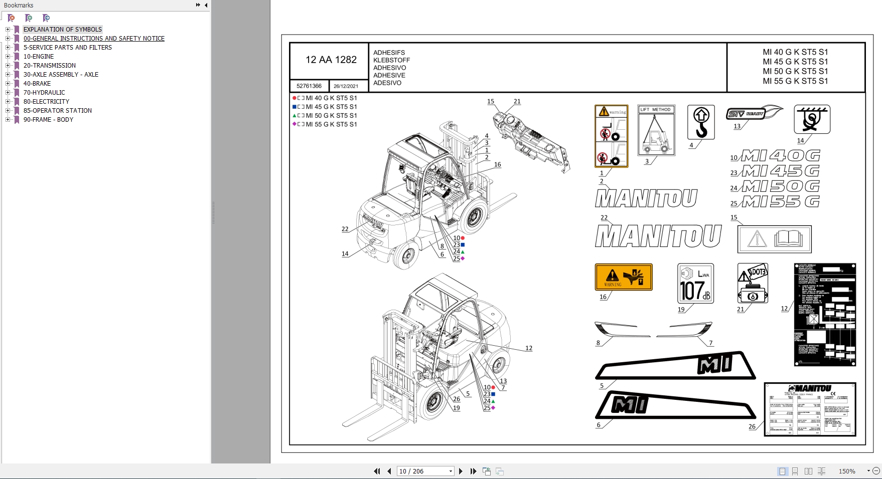 The Bookmarks of Manitou MI 50 G K ST5 S1 Forklift Parts Manual: