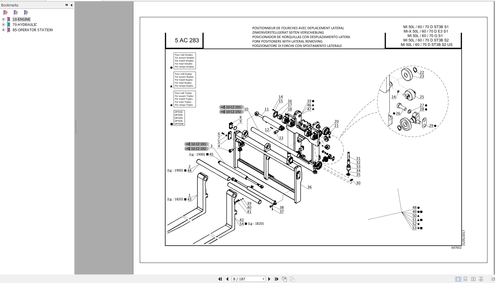 Manitou MI 50L 60 70 D ST3B S1 MI 80 100 D ST4 S2 US Parts Manual 647652