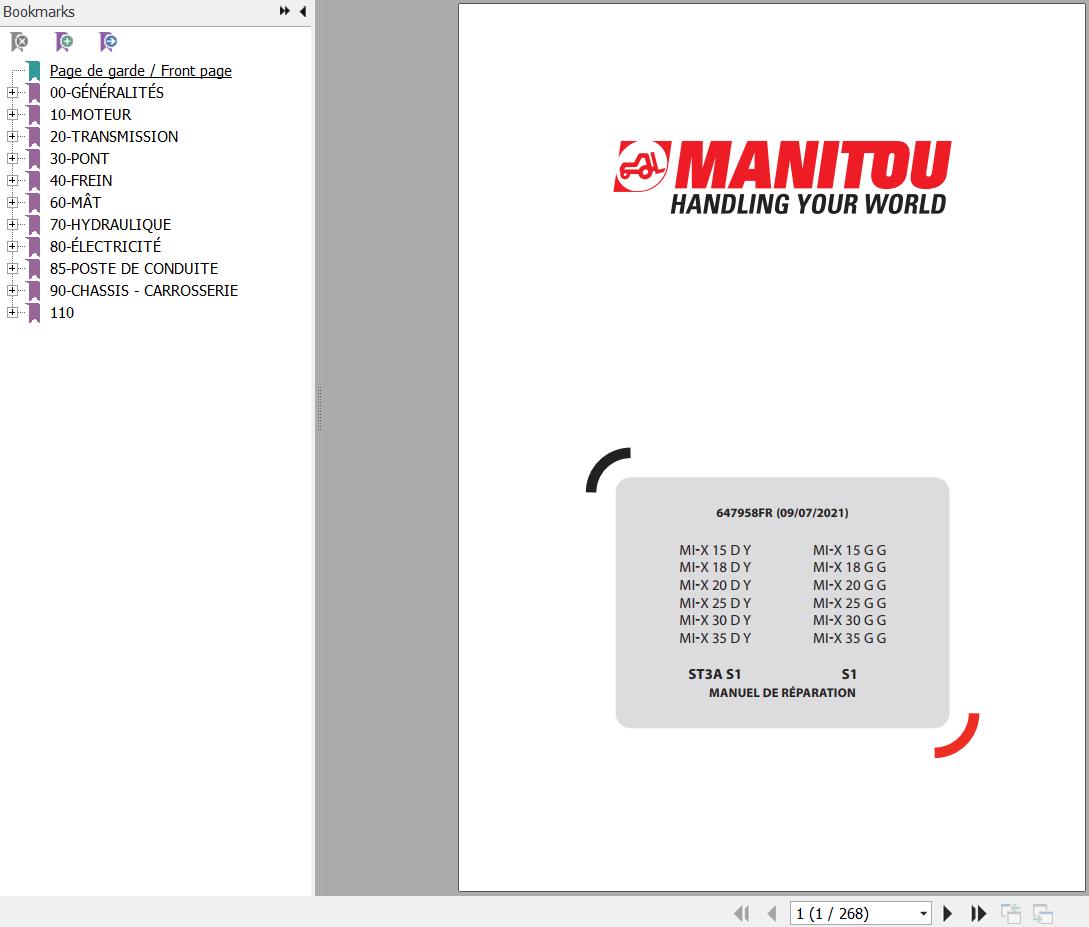 The Bookmarks Of Manitou MI X 15 18 20 25 30 35 D Y ST3A S1 MI X 15 18 20 25 30 35 G G S1 Forklift Repair Manual:
