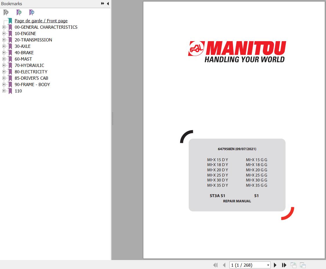 The Bookmarks Of Manitou MI-X 15 18 20 25 35 D Y ST3A S1 MI-X 15 18 20 25 35 G G S1 Forklift Repair Manual: