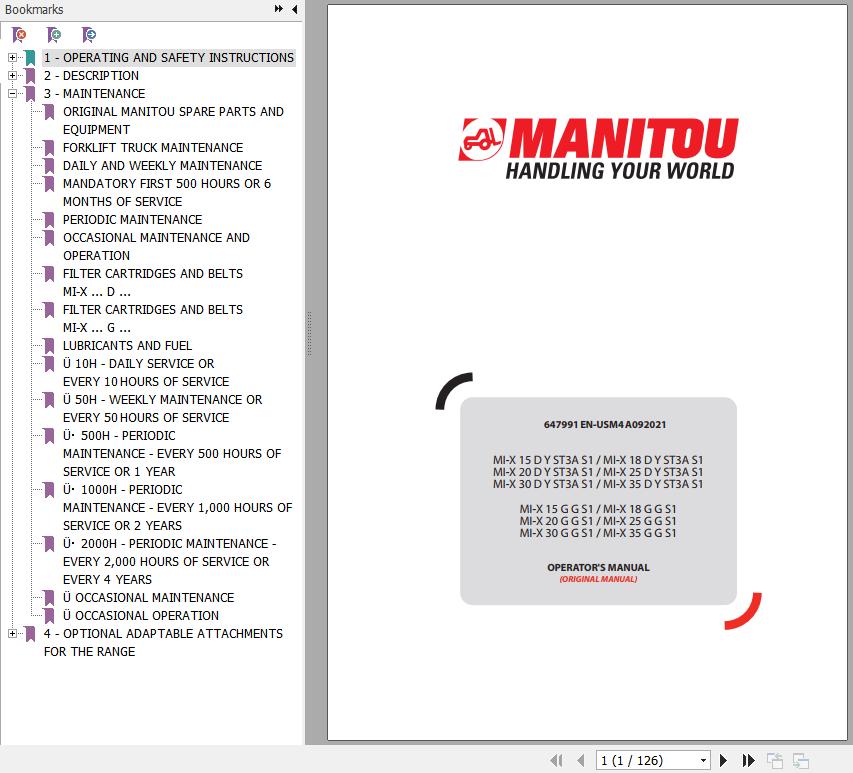 Manitou MI-X 15 D Y ST3A S1 To MI-X 35 G G S1 Operator's Manual 647991EN-USM4A092021