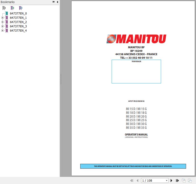 Manitou MI 15 D To MI 35 G Operator's Manual 647377 EN