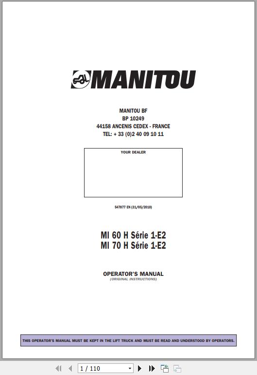 Manitou MI 60 H Series 1-E2 MI 70 H Series 1-E2 Operator's Manual 547877