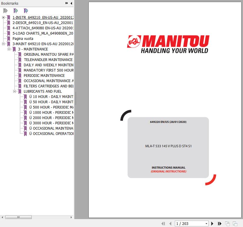 The Bookmarks of Manitou MLA-T533 145 V PLUS D ST4 S1 Articulated Loaders Operator's Manual: