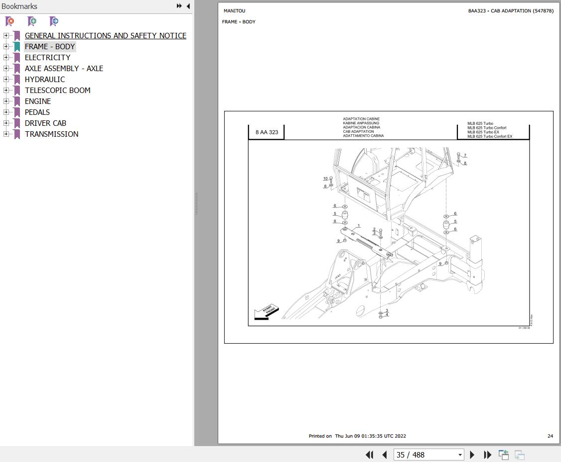 The Bookmarks Of Manitou MLB 625 TURBO CONFORT S1 E2 Telescopic Handler Parts Catalog: