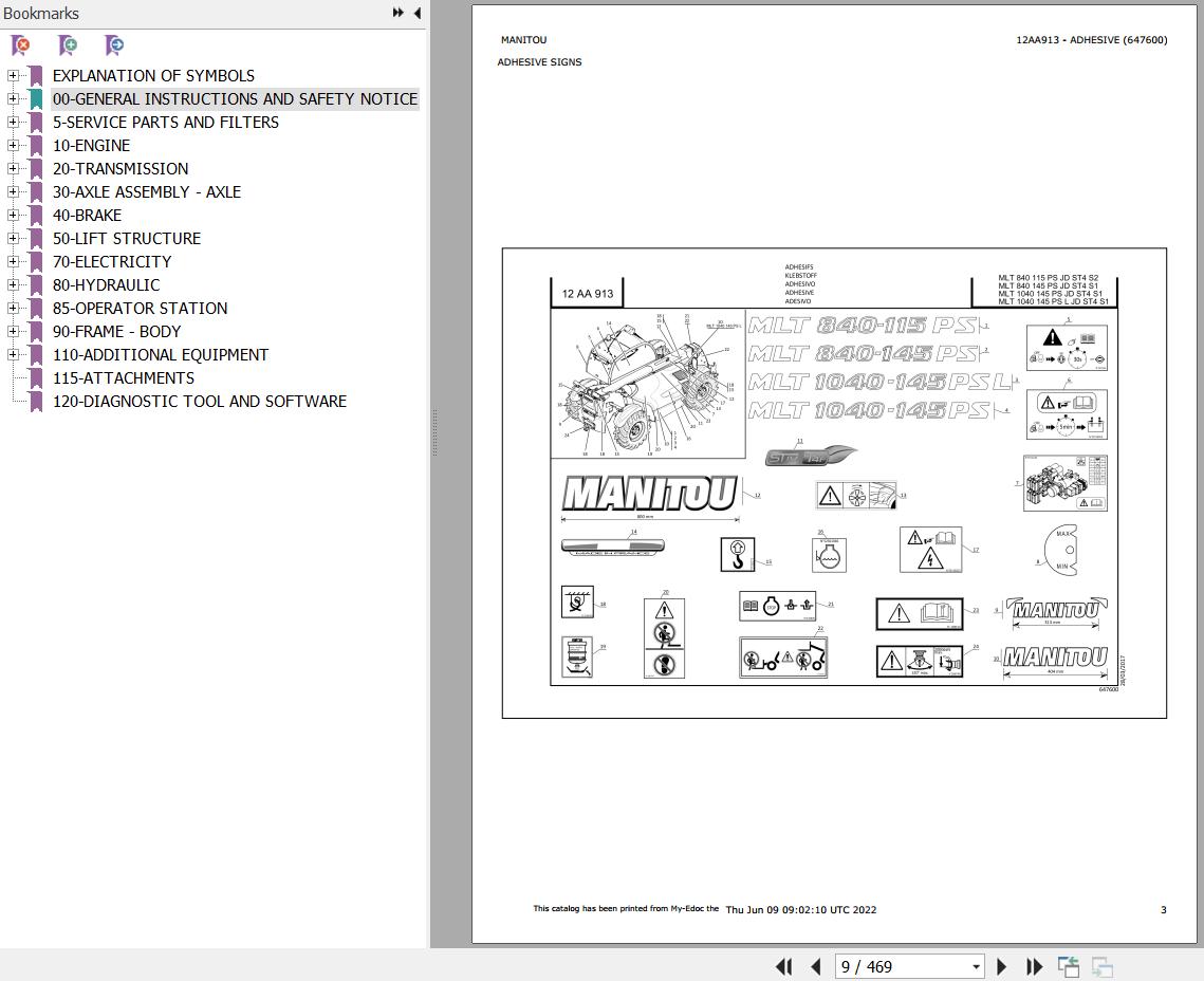 The Bookmarks Of Manitou MLT 1040 145 PS JD ST4 S1 Telescopic Handler Parts Catalog:
