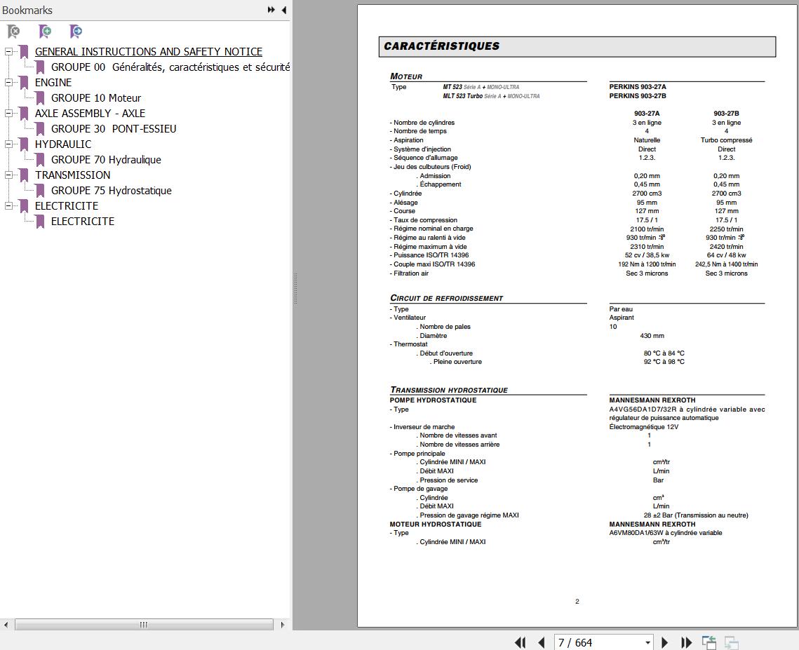 The Bookmarks Of Manitou MLT 523 Turbo MONO ULTRA SA MLT 523 Turbo SA MT 523 MONO ULTRA SA MT 523 SA Telescopic Handlers Repair Manual: