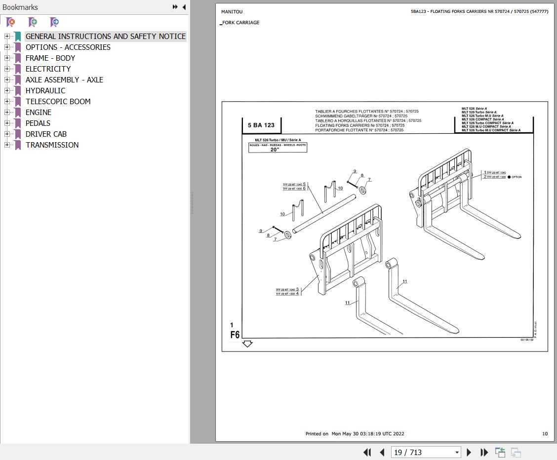 The Bookmarks Of Manitou MLT 526 20 SA Telescopic Handler Parts Catalog: