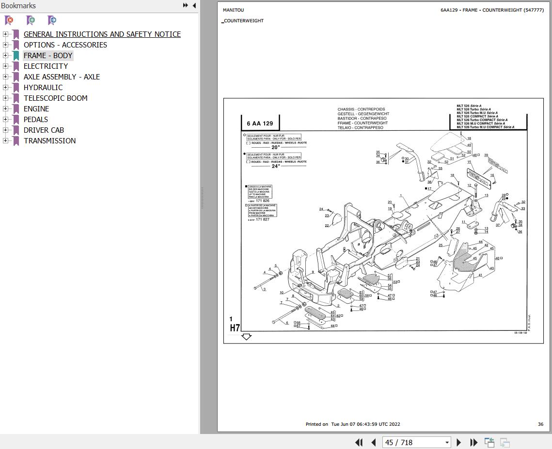 Manitou MLT 526 24 SA Parts Catalog 547777