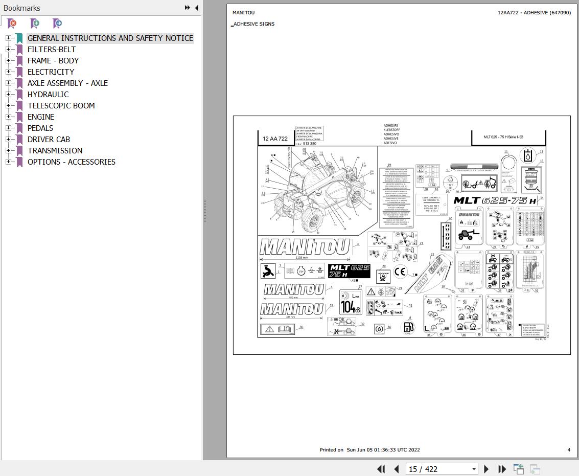 The Bookmarks Of Manitou MLT 625-75 H S1 E3 Telescopic Handler Parts Catalog: