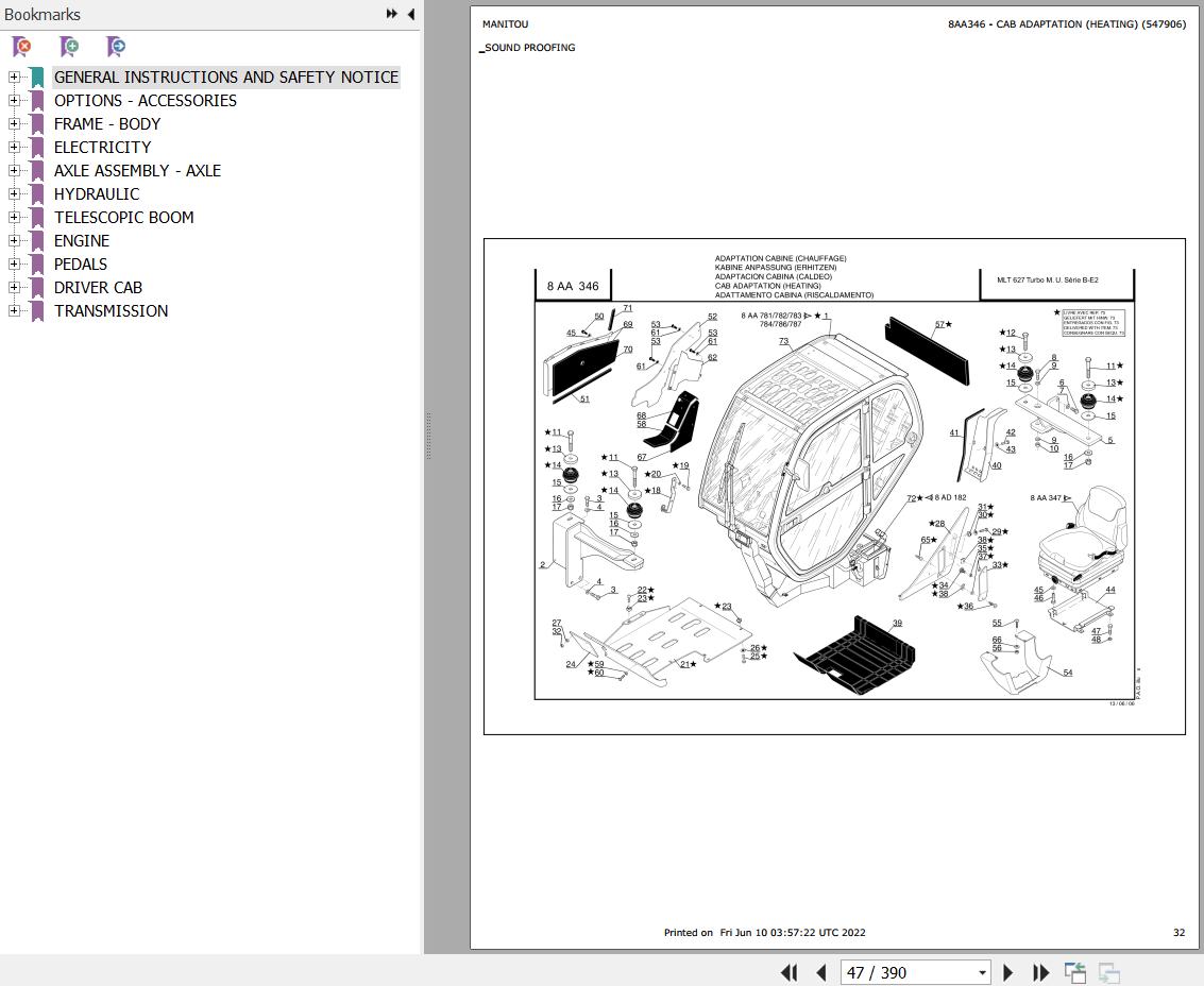 The Bookmarks Of Manitou MLT 627 TURBO MONO ULTRA SB E2 USA Telescopic Handler Parts Catalog: