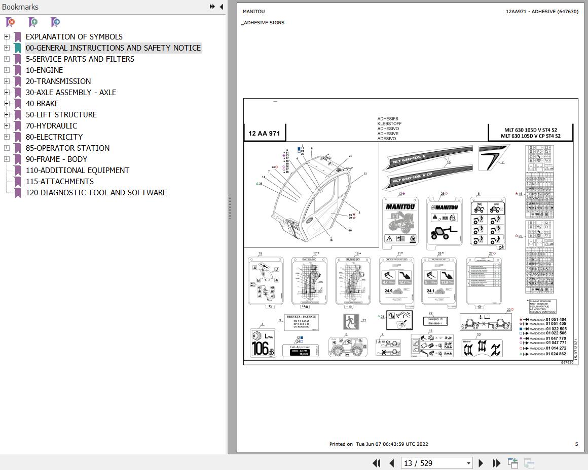 The Bookmarks Of Manitou MLT 630 105D V ST4 S2 Telescopic Handler Parts Catalog: