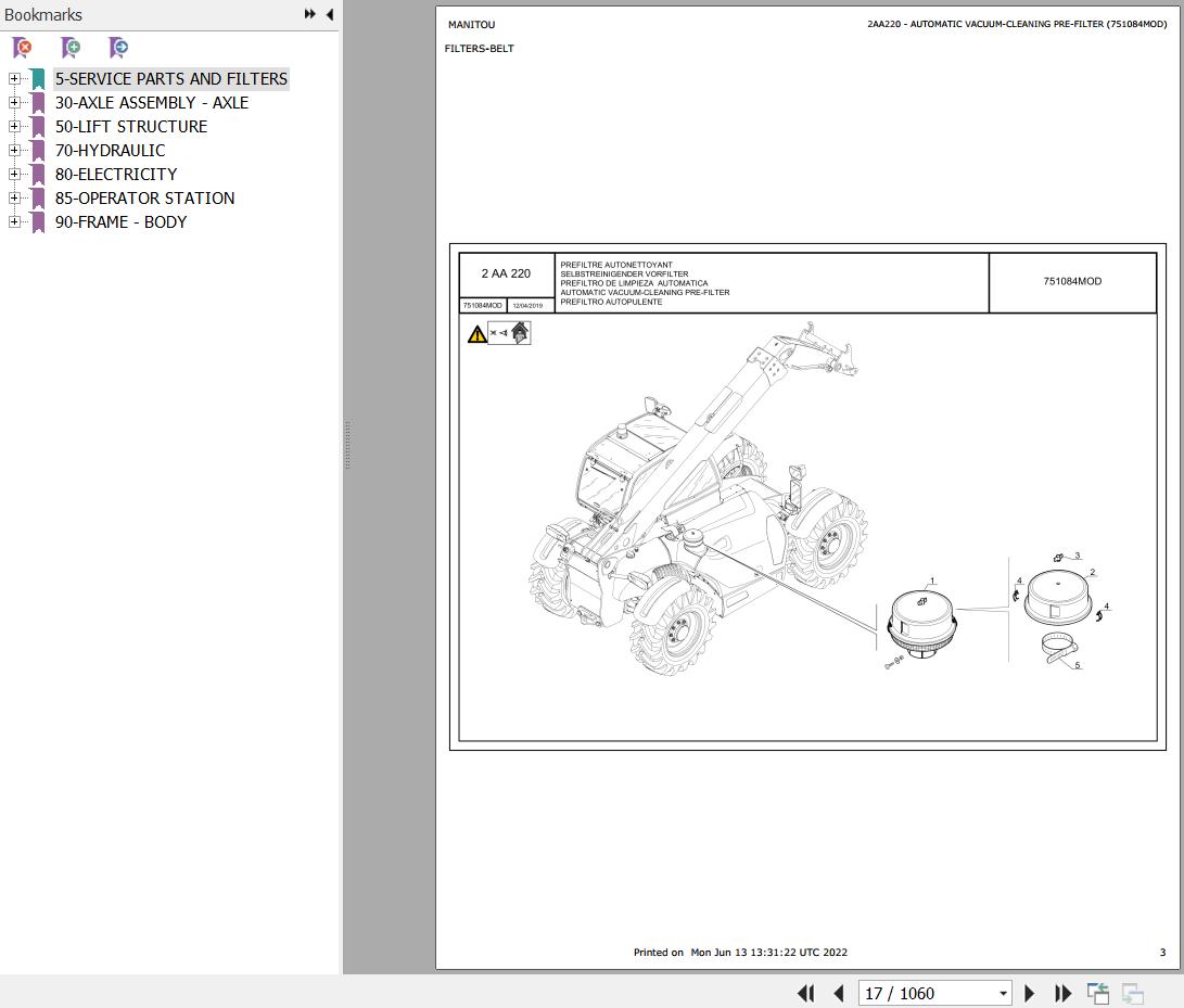 Manitou MLT 630 TURBO SD E3 742 TURBO S4 E3 634 731 735 741 1035 Series MT 732 932 SD E3 1033 Series Parts Catalog