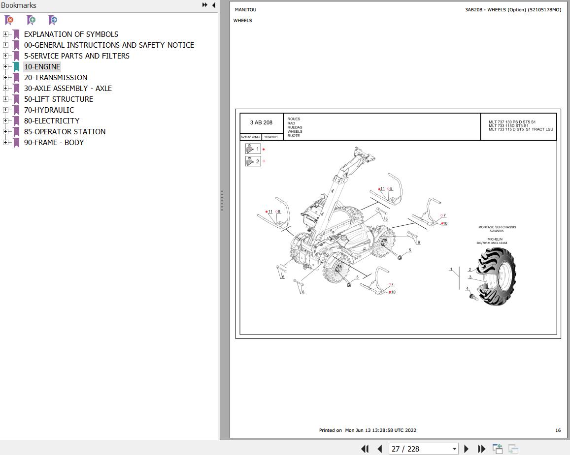 Manitou MLT 635 741 940 140 V PLUS 635 737 741 130 PS D ST5 S1 733 115 D ST5 S1 TRACT LSU Parts Catalog 52728996