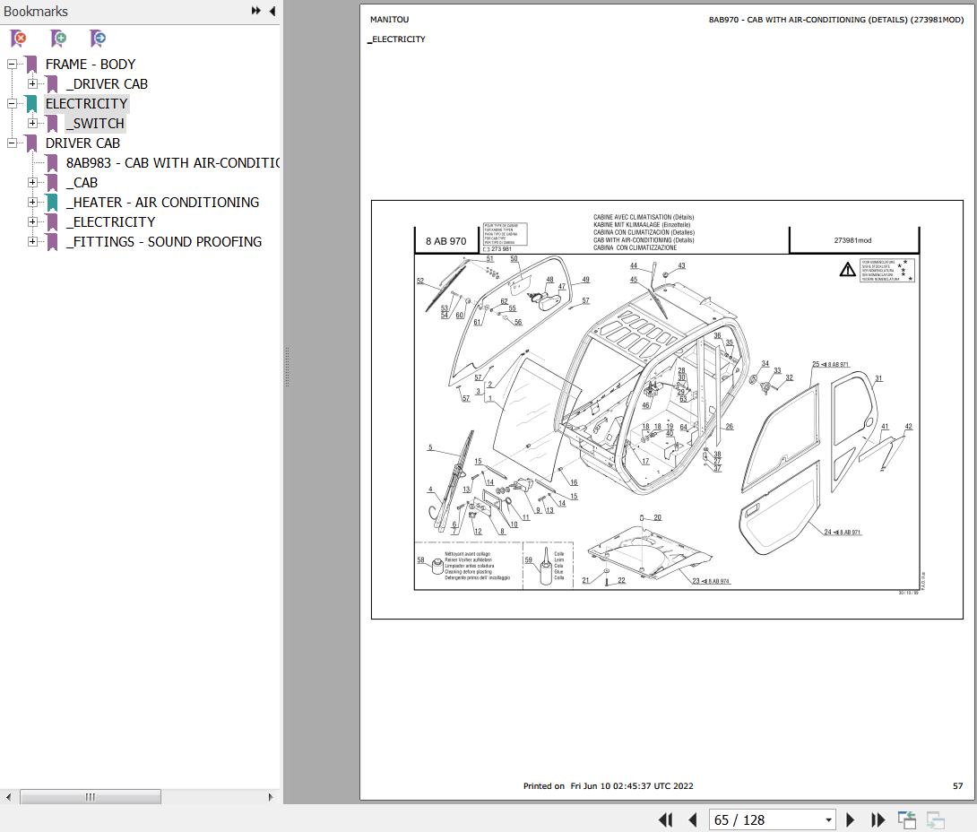 The Bookmarks Of Manitou MLT 731 TURBO A SD E3 Telescopic Handler Parts Catalog:
