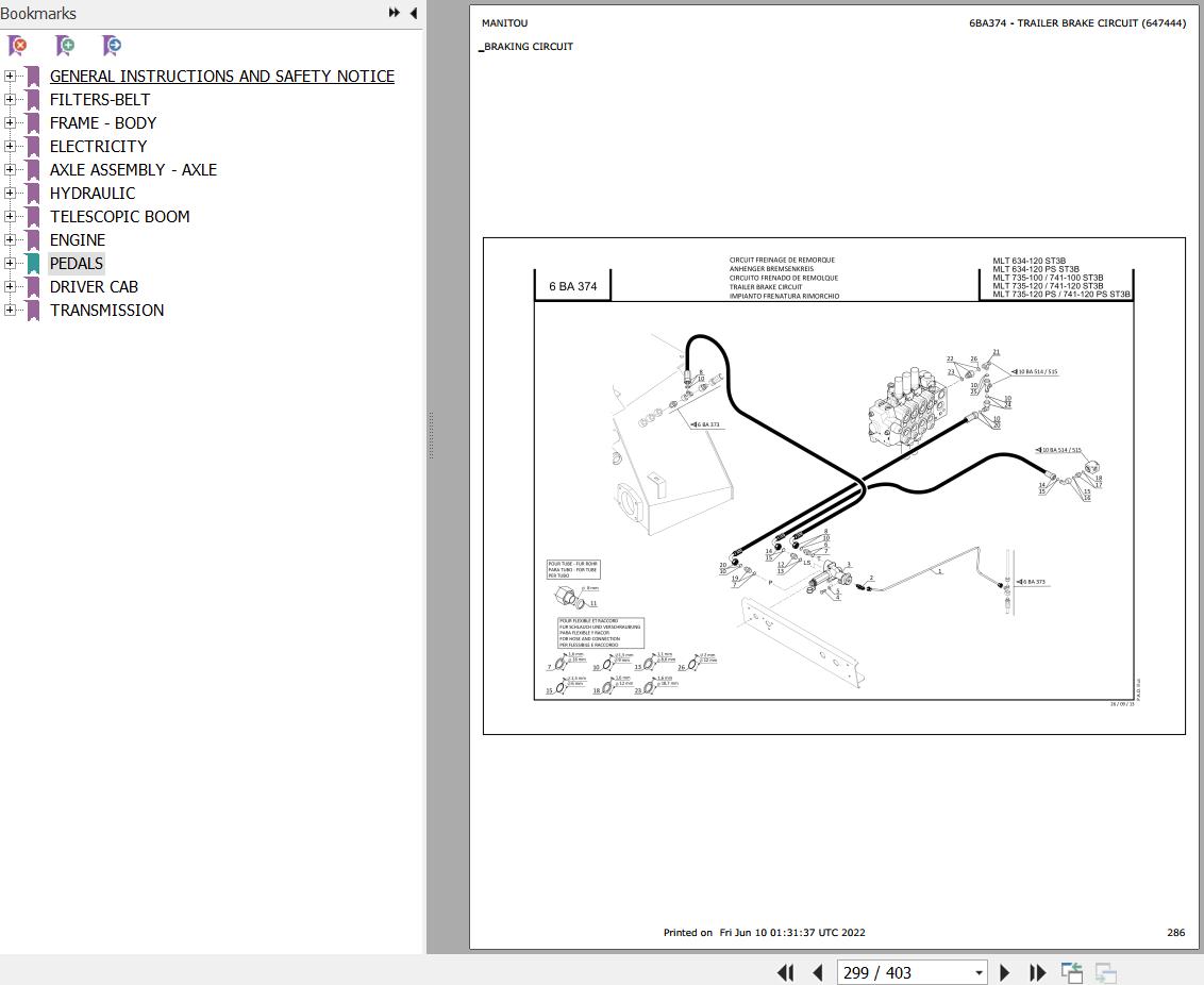The Bookmarks Of Manitou MLT 741 120 ST3B Telescopic Handler Parts Catalog: