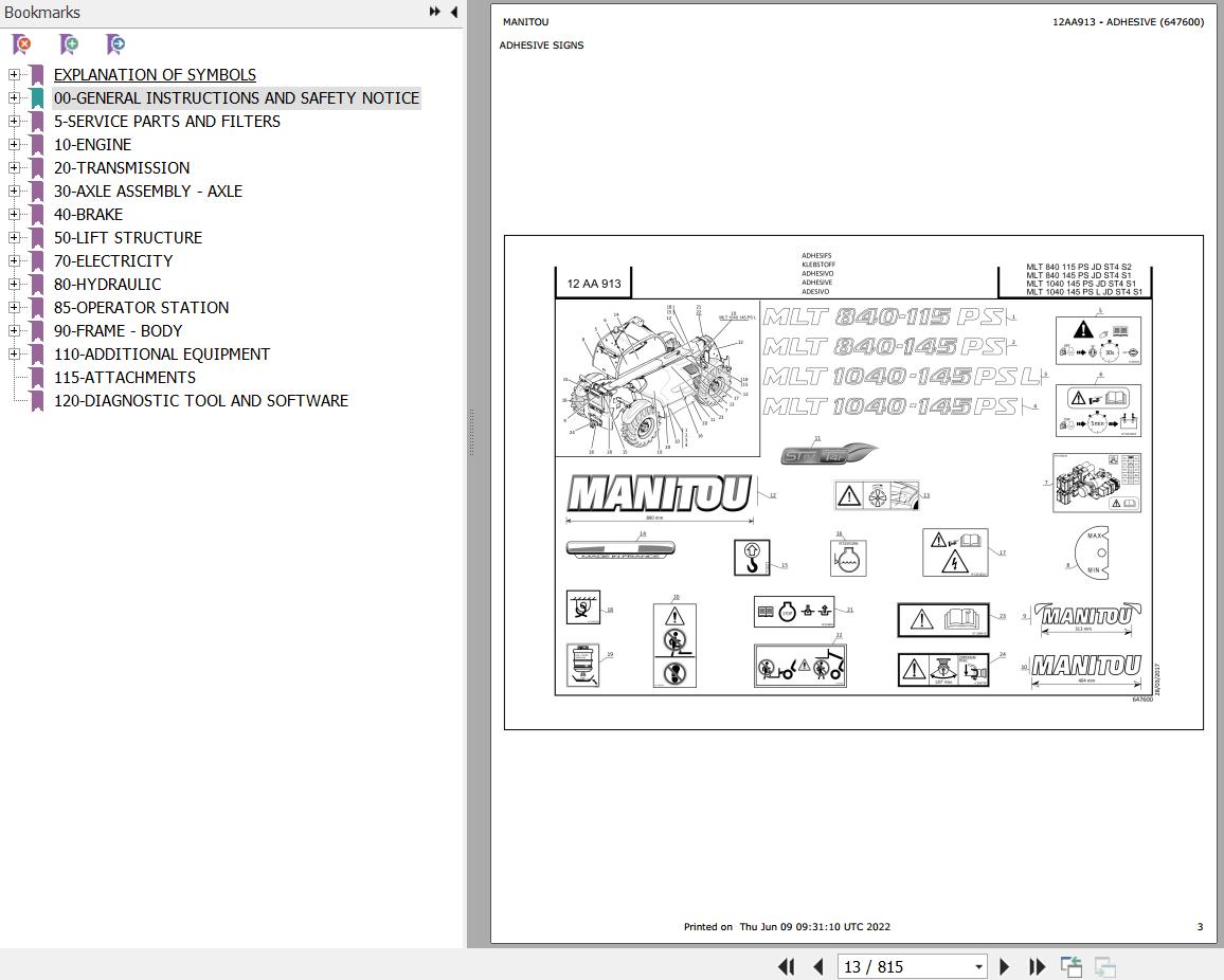 Manitou MLT 840 1040 145 PS JD ST4 S1 1040 145 PS L JD ST4 S1 840 115 PS JD ST4 S2 Parts Catalog 647600