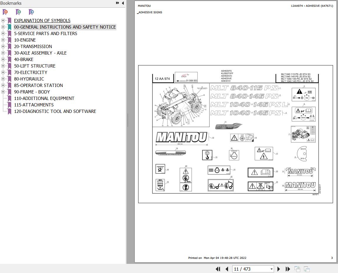 The Bookmarks Of Manitou MLT 840 115 PS JD ST4 S3 Telescopic Handler Parts Catalog:
