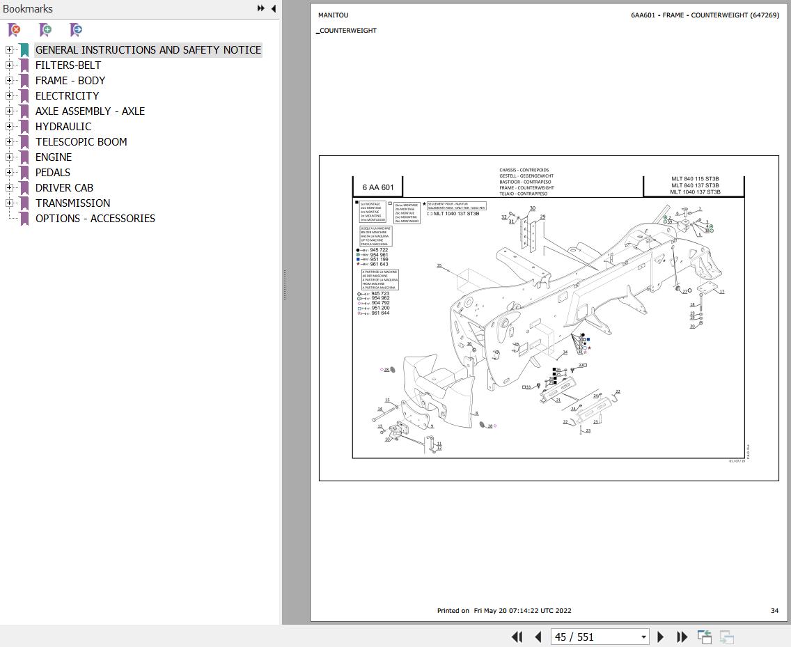 The Bookmarks Of Manitou MLT 840 115 ST3B Telescopic Handler Parts Catalog: