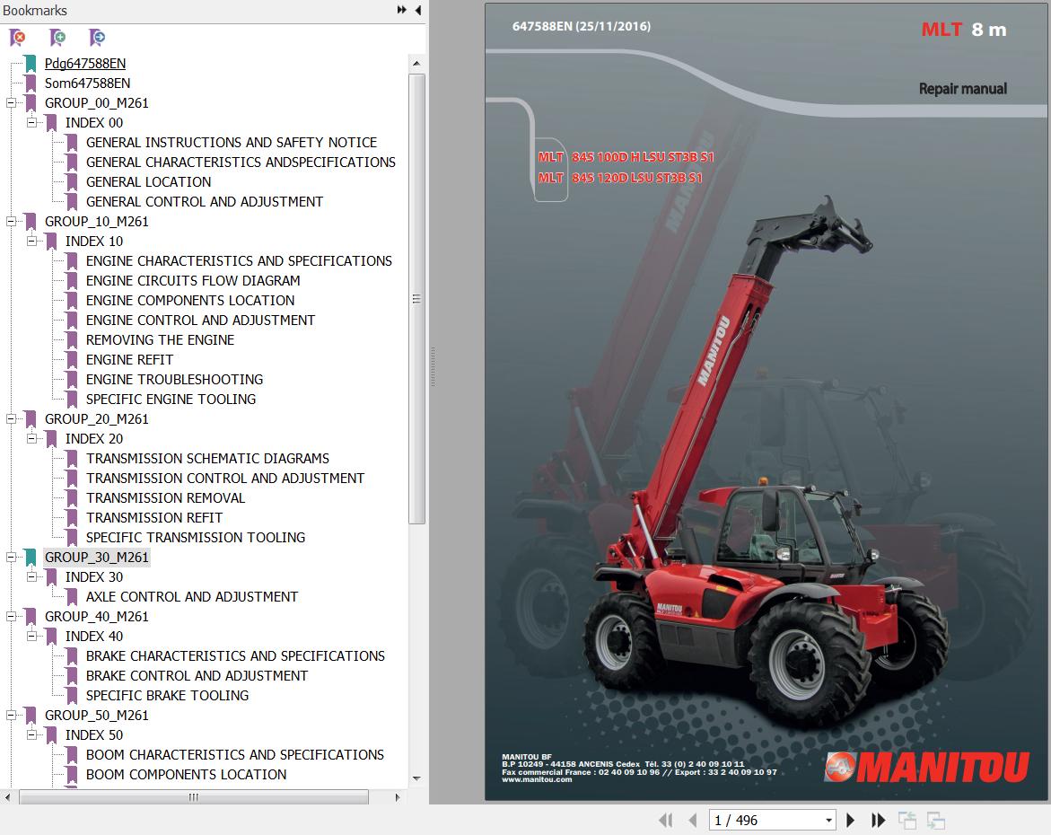 The Bookmarks Of Manitou MLT 845 100D H LSU ST3B S1 MLT 845 120D LSU ST3B S1 Telescopic Handler Repair Manual: