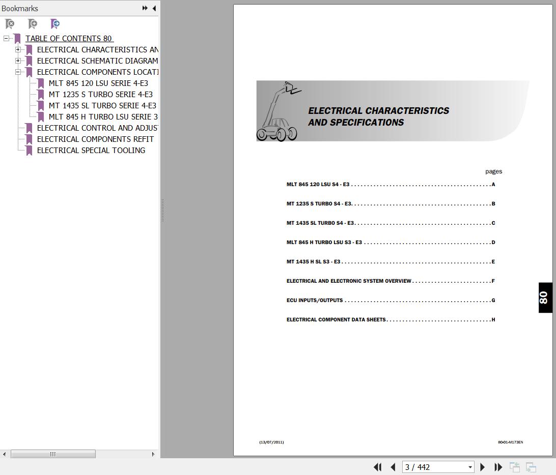 The Bookmarks Of Manitou MLT 845 120 LSU MT 1235S 1435SL TURBO S4 E3 MLT 845H TURBO LSU MT 1435H SL S3 E3 Repair Manual:
