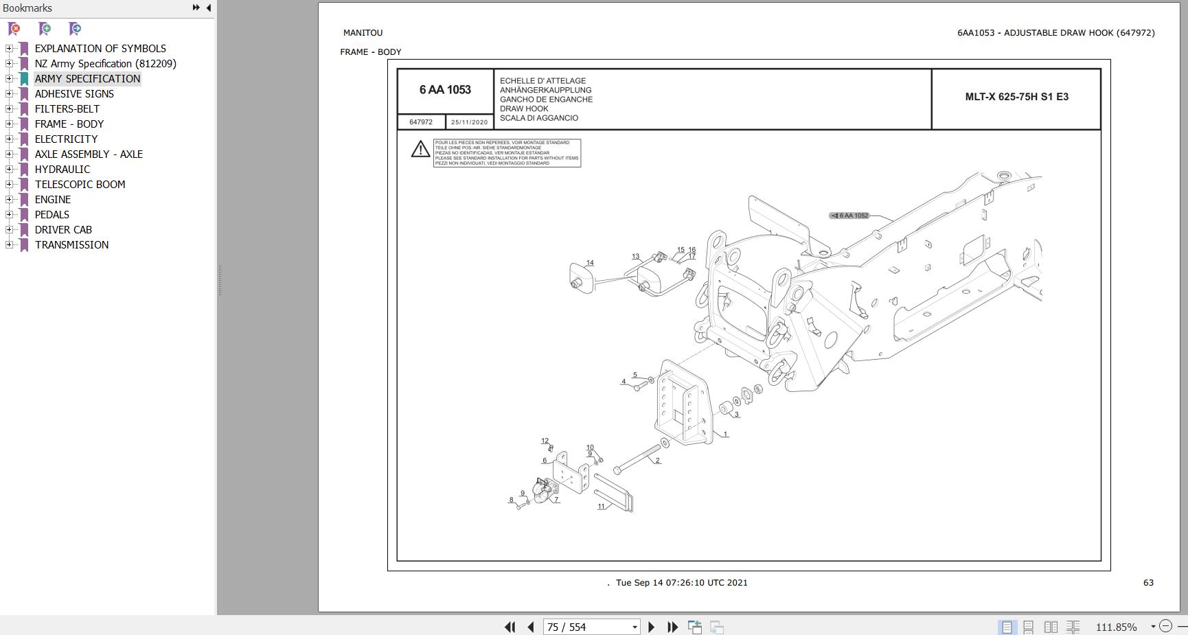 The Bookmarks Of Manitou MLT-X 625-75H S1 E3 AUS ARMY Telescopic Handler Parts Catalog: