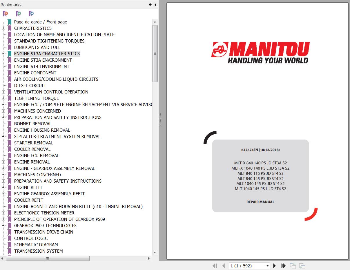 Manitou MLT-X 840 140 PS JD ST3A ST4 S2 S3 MLT-X 1040 140 145 PS L JD ST3A ST4 S2 Repair Manual 647674
