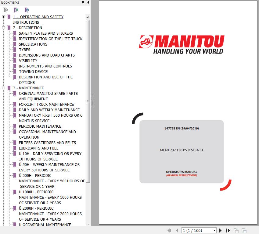 The Bookmarks of Manitou MLT-X 737 130 PS D ST3A S1 Telescopic Handlers Operator's Manual:
