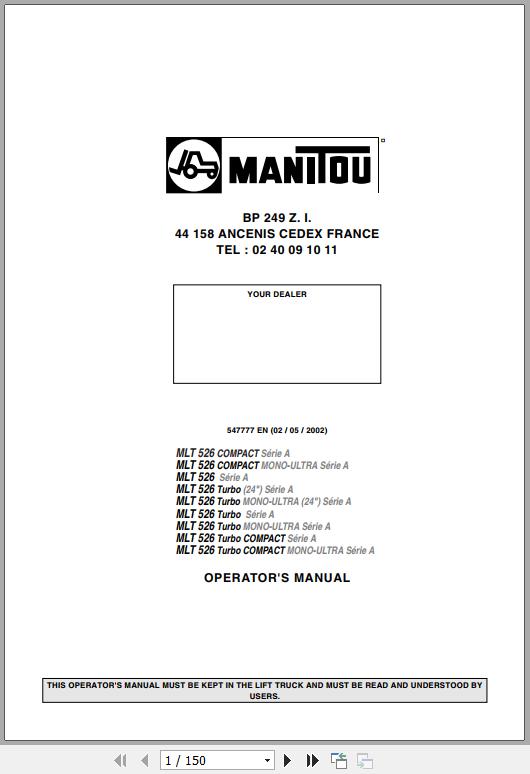 Manitou MLT 526 Series A Operator's Manual 547777 EN