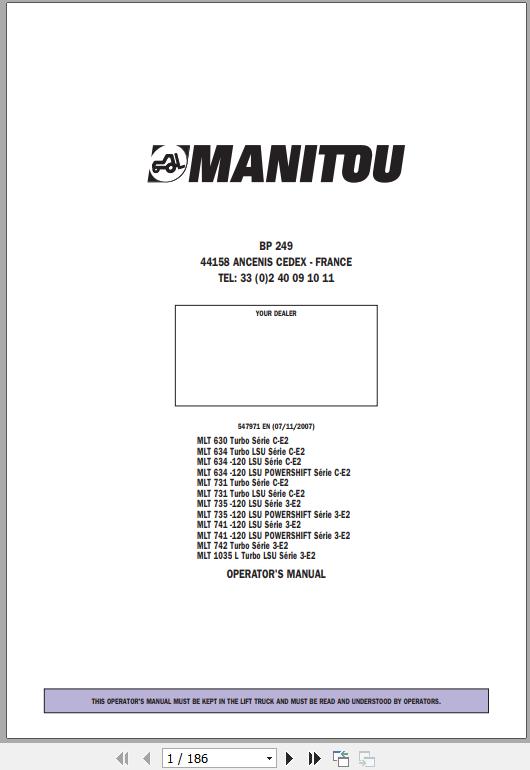 Manitou MLT 630 Turbo Series C-E2 To MLT 1035 L Turbo LSU Series 3-E2 Operator's Manual 547971 EN