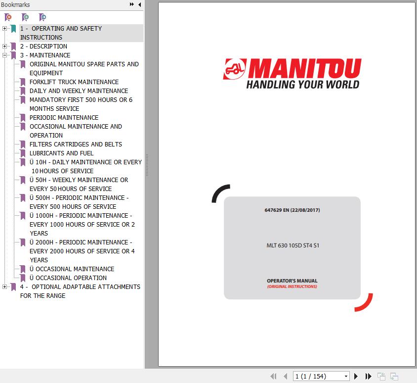 The Bookmarks of Manitou MLT 630 105D ST4 S1 Telescopic Handlers Operator's Manual: