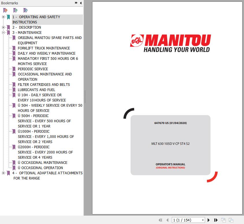 The Bookmarks of Manitou MLT 630 105D V CP ST4 S2 Telescopic Handlers Operator's Manual: