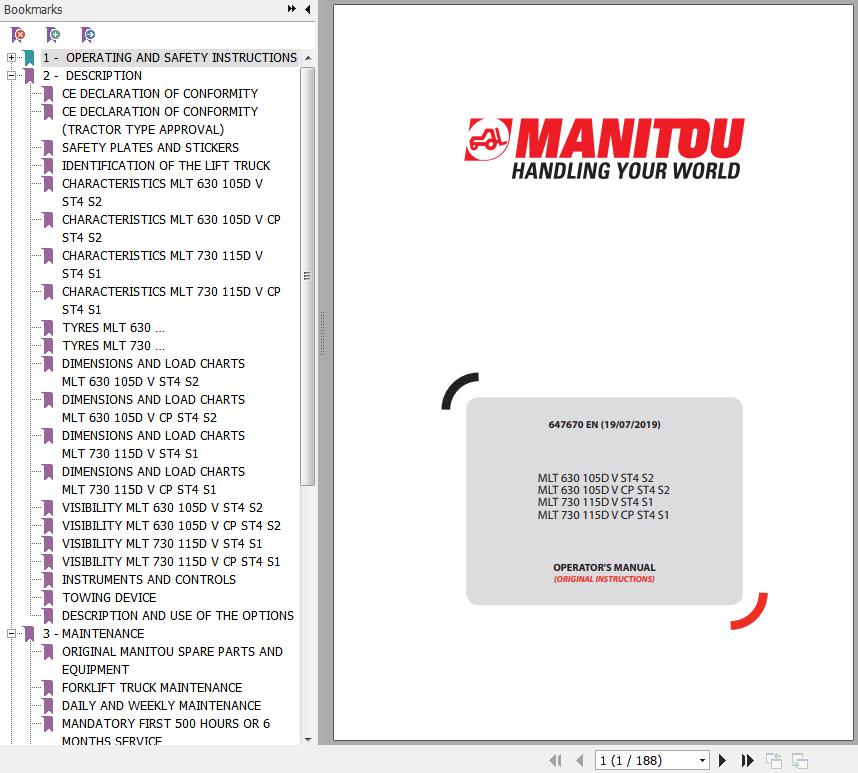 The Bookmarks of Manitou MLT 630 105D V ST4 S2 To MLT 730 115D V CP ST4 S1 Operator's Manual: