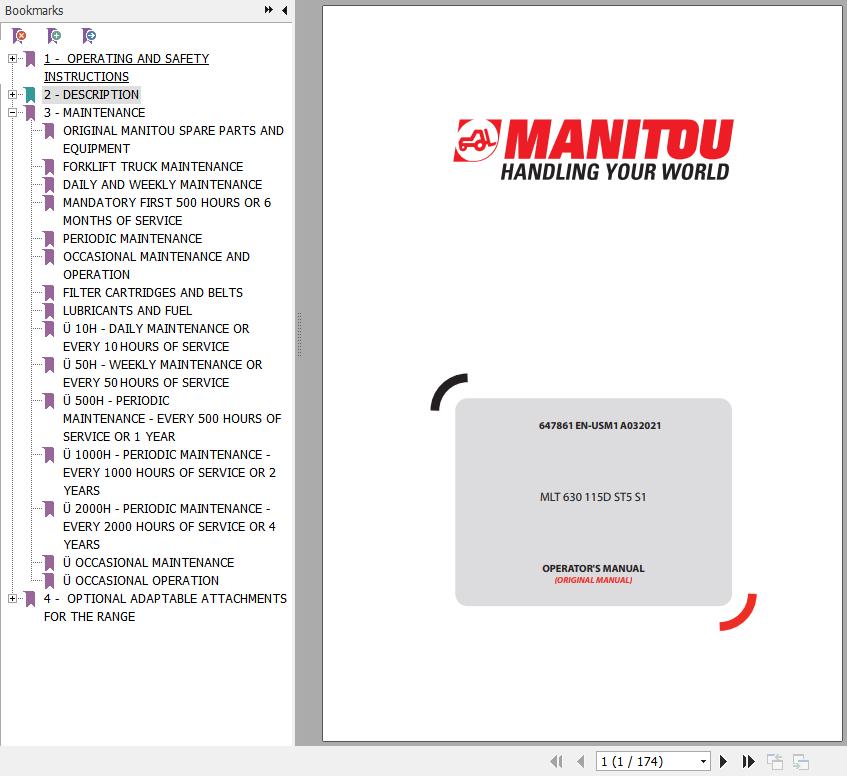 The Bookmarks of Manitou MLT 630 115D ST5 S1 Telescopic Handlers Operator's Manual: