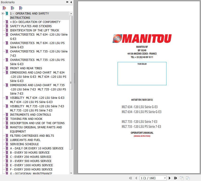 The Bookmarks of Manitou MLT 634 120 LSU Series G-E3 To MLT 735 120 LSU PS Series 7-E3 Operator's Manual: