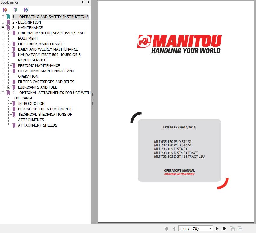 The Bookmarks of Manitou MLT 635 130 PS D ST4 S1 To MLT 733 105D ST4 S1 TRACT LSU Operator's Manual :