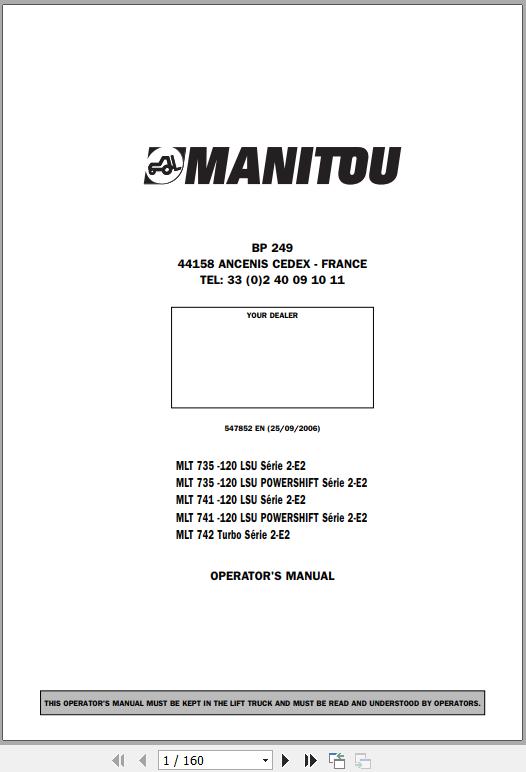 The Bookmarks of Manitou MLT 735 120 LSU Series 2-E2 To MLT 742 Turbo Series 2-E2 Operator's Manual: