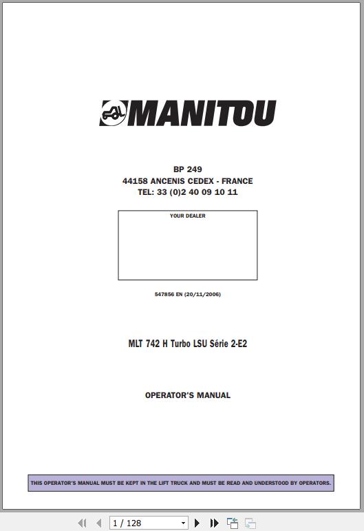 The Bookmarks of Manitou MLT 742 H Turbo LSU Series 2-E2 Telescopic Handlers Operator's Manual: