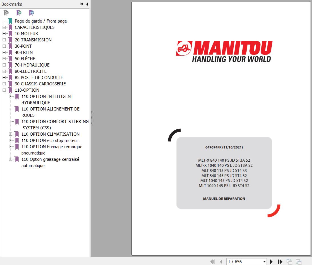 The Bookmarks Of Manitou MLT(X) 840 1040 115 140 145 PS (L) JD ST3A-4 S2-3 Telescopic Handlers Repair Manual: