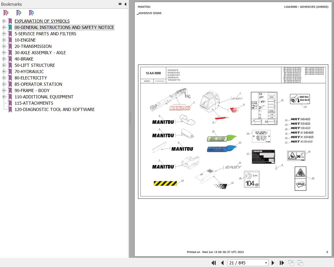 The Bookmarks Of Manitou MRT 1440 EASY 75P 400 ST3B S2 Telescopic Handler Parts Catalog:
